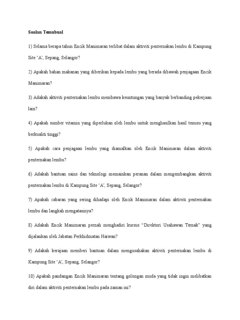 View Contoh Soalan dan laporan Temubual 2docx from KERTAS KER 332 at University of Malaya. Contoh soalan temubual guru pendidikan khas di contoh soalan temubual guru pendidikan khas johor contoh soalan temubual guru pendidikan agama contoh soalan temubual guru pendidikan awal kanak kanak contoh soalan temubual guru cemerlang contoh soalan temubual berstruktur contoh soalan temubual tokoh contoh soalan temubual kajian contoh soalan temubual. Contoh Jawapan Tugasan Geografi Pt3 2015 Kegiatan Ekonomi via.